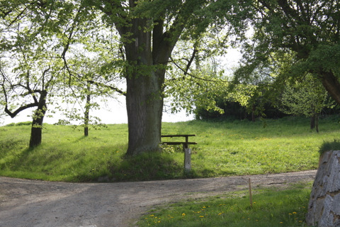 Alte Eiche vor der Mühle und Freisitz für Gäste